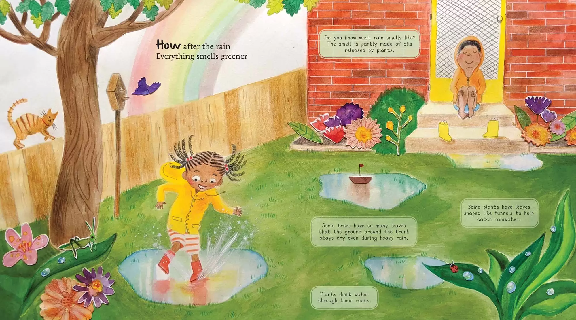 “[A]n infor­mative picture book that encourages children to get outdoors and observe things. These observations are com­plemented with information about a variety of things including animals, trees, flowers, seeds, pollination, wa­ter and soil…”—Metroland Toronto