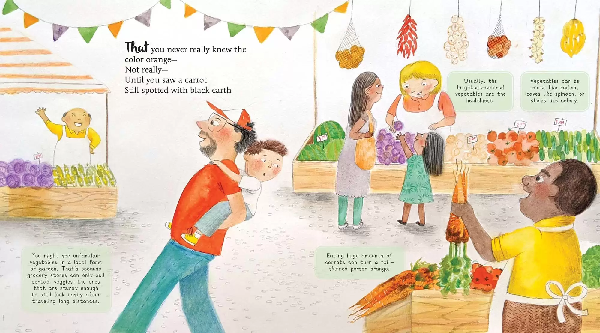 “From microbes in the soil to a rainbow in the sky, Outside, You Notice is an invitation to pay attention to the natural world around us in concrete, physical ways. With themes of healthy living, the science of nature, and curiosity, it will spark wide-ranging and cross-curricular conversations and ignite a passion for outdoor living.”—Children’s Book News